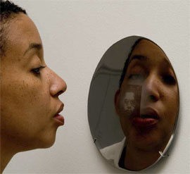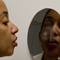 Aliento es una serie de retratos impresos en foto-serigrafía con grasa sobre espejos metálicos, dispuestos a la altura del observador. Los espejos aparecen vacíos a primera vista; la impresión solo se revela cuando el espectador, después de haberse reconocido, respira sobre el espejo circular. En este efímero instante, la imagen reflejada es reemplazada por la imagen impresa (fotografías tomadas de los obituarios) de alguien ya desaparecido que retorna fugazmente gracias al soplo de vida del observador.