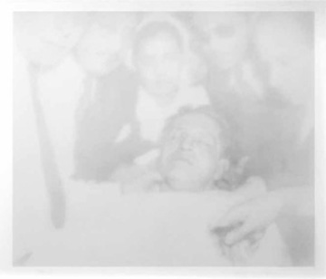 Las primeras imágenes logradas por Niépce, proto-fotografías que no lograban mantenerse íntegras como imagen debido a que la luz que las había creado seguía incidiendo sobre ellas, terminaban por sucumbir a la oscuridad en un inexorable fundido a negro. Es lo que sucede en la técnica fotográfica análoga cuando una foto no se lava bien y el revelador sigue actuando, o cuando el papel fotográfico es expuesto directamente a la acción de la luz. Pero la imagen también puede hacer un tránsito hacia la claridad. En Impresiones débiles, Muñoz toma fotografías con una fuerte carga histórica y las somete a un proceso de indefinición formal que recuerda aquellas fotos "lavadas" en las cuales la sobreexposición a la luz deteriora la imagen hasta hacerla apenas perceptible. Las obras que conforman la serie son en realidad grabados, más que fotografías, pues se trata de serigrafías realizadas con polvo de carbón sobre acrílico. La distancia variable entre el tamiz de serigrafía y el soporte permiten singularizar en cada impresión un sujeto diferente de la fotografía original, para que aparezca con mayor definición que el resto. Esta "oscilación de foco" que se percibe en la serie cuestiona otra de las supuestas características esenciales de la fotografía: la sistemática objetividad técnica de la cámara frente a los sujetos capturados por la lente.