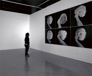 También referenciando el sujeto y la muerte, La mirada del cíclope utiliza una de las técnicas más antiguas de retrato (y de impronta): un molde hecho por contacto directo, en este caso del rostro del artista. Este objeto escultórico (inspirado en la antigua tradición romana de las máscaras mortuorias) se torna bidimensional al ser captado por el ojo único de la cámara (de ahí el título); sin referentes de volumen, el ojo del espectador no termina de decidir si el objeto representado es cóncavo o convexo, en un juego perceptual de opuestos: negativo/positivo, presencia/ausencia, realidad e ilusión. Citando a Pierre Bourdieu, Muñoz ha afirmado que "los imagines de la antigua Roma equivalen exactamente al carácter social de algunos retratos fotográficos en la actualidad; desempeñan una labor importante en el tortuoso trabajo del duelo: aceptar una realidad 'acostumbrándose a la irrealidad de sus imágenes'".