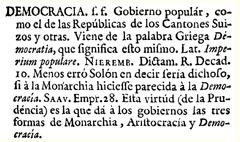 Democracia. La democracia en nuestros días ha dejado de designar simplemente una determinada forma de gobierno y cobró, además, connotaciones valorativas. Pero esto no era así en tiempos de la independencia. La misma era normalmente muy mal vista. En realidad, lo que se observa en las fuentes es cierta ambivalencia, furiosas críticas coexisten con las reivindicaciones de la democracia como la base misma en que se fundan los nuevos estados nacidos de la revolución de independencia. ¿Cómo entender esta aparente paradoja? Para ello es necesario adentrarse en la historia conceptual.