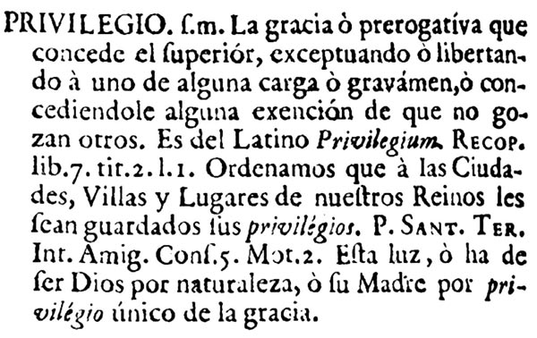 “Que tales privilegios existieron y perduraron hasta fines del siglo XVIII con efectividad, nos lo demuestra el testimonio de Francisco Silvestre, fino observador de la sociedad colonial neogranadina y eficiente funcionario de la Corona. Con una clara visión de lo que debe ser un estado moderno, en las recomendaciones finales de su Descripción del Nuevo Reino de Santa Fe hace directa alusión a ellos y solicita que sean eliminados en nombre de la justicia y beneficio de la Corona. Silvestre había sido gobernador de la provincia de Antioquia y alto funcionario del Virreinato y desde esas posiciones pudo darse cuenta de que el peligro latente para la dominación española en las colonias estaba en el grupo criollo, demasiado seguro de sí mismo, que manifestaba “gran entusiasmo de nobleza y engreído orgullo y apego a los títulos colorados y pomposos”, según lo decía de los criollos de Antioquia. Sobre el tema de las preeminencias, dignidades, privilegios y exenciones, éstas eran sus palabras textuales: