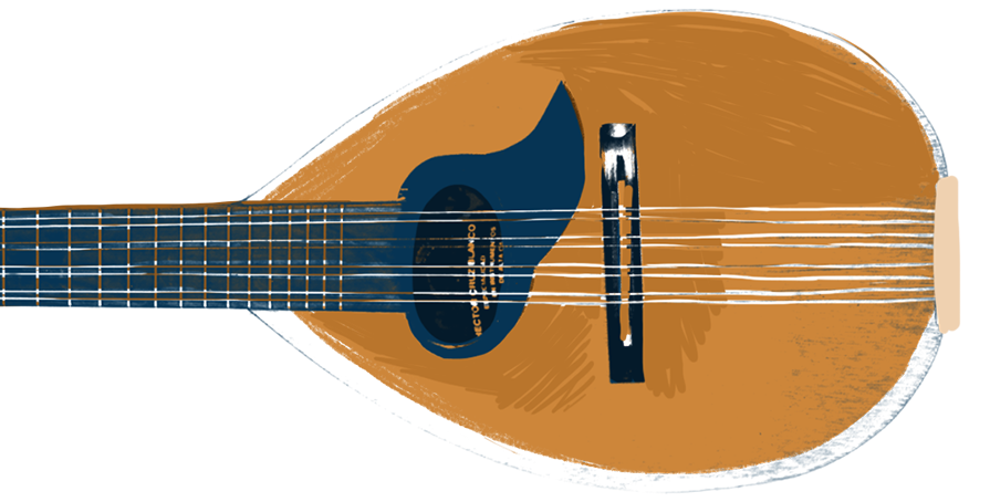 La mandolina cumple una función armónica y es la guía y el elemento líder, junto con la voz, en las músicas del archipiélago. De ahí, pues, que sea común que sea la mandolina el instrumento que inicia las canciones y hace el llamado para que los demás entren al ensamble.