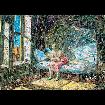 Alejándose de las series anteriores, el material utilizado por Muniz aquí no está supeditado a la imagen. El espectador se debe esforzar mucho más para “ver” la pintura recreada. No hay diferencias, imagen y material tienen la misma importancia y ni siquiera se destaca un elemento concreto en el conjunto de la obra: una foto periodística de Scarlett Johansson, el icónico retrato de Adele obra de Klimt, un trozo de texto seleccionado al azar o el fragmento de una pintura de Gauguin, todos tienen el mismo valor.