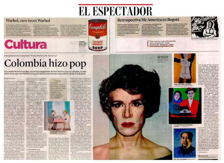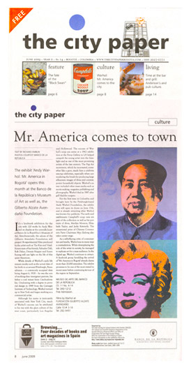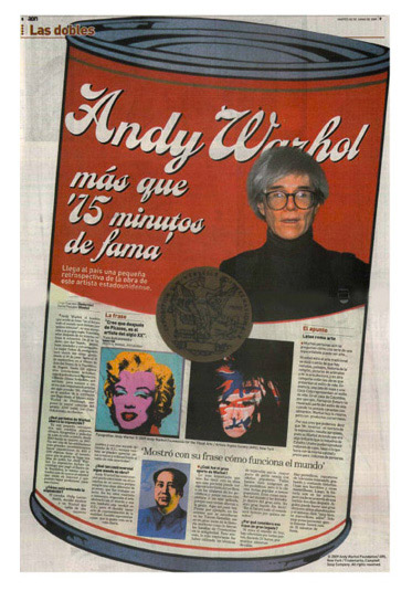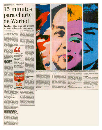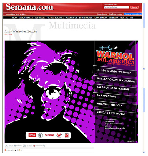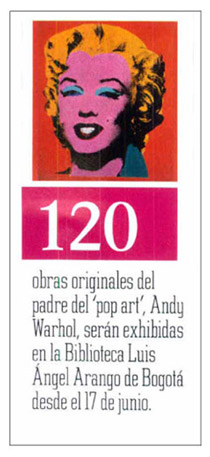 La Oficina de Divulgación y Servicios Educativos de la Biblioteca Luis Ángel Arango del Banco de la República, ha dispuesto esta página web como reporte de presa en línea, que registra y clasifica de forma permanente la información publicada en los medios de comunicación sobre la exposición Andy Warhol, Mr. America. Su objetivo es dar a conocer de forma real, objetiva y oportuna las publicaciones y productos impresos, audiovisuales y electrónicos que la exposición suscite.
